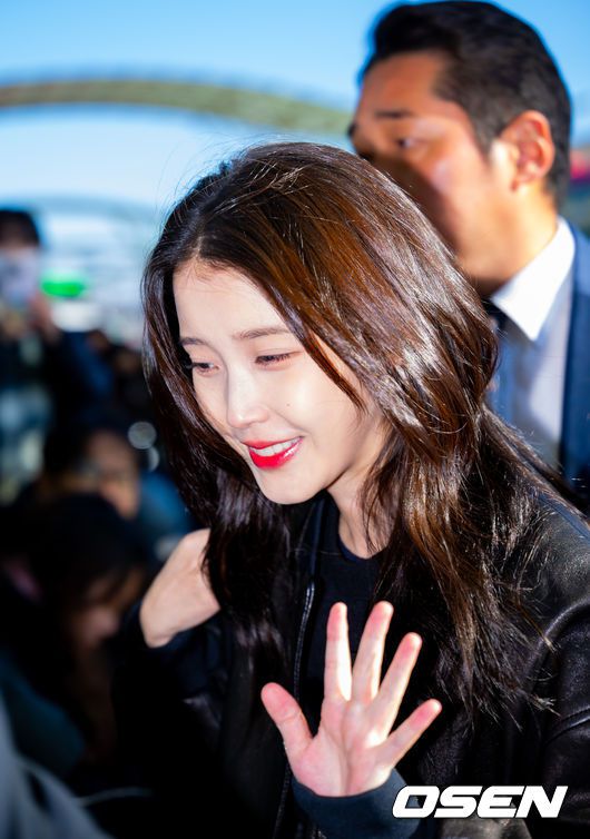 가수 겸 배우 아이유(이지은, IU)가 5일 해외 일정차 인천국제공항을 통해 대만 가오슝으로 출국했다. 아이유는 오는 6일 대만 가오슝에서 개최되는 ‘10주년 아시아 아티스트 어워즈 2025(10th Anniversary Asia Artist Awards 2025)(10주년 AAA 2025)’에 참석한다. 아이유 출국길에 포즈를 취하고 있다. 2025.12