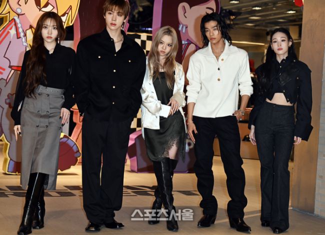 올데이프로젝트(ALLDAY PROJECT) 이주상기자 rainbow@sportsseoul.com 혼성그룹 올데이프로젝트(ALLDAY PROJECT/영서, 우찬, 베일리, 타잔, 애니(왼쪽부터))가 8일 서울 성동구 에이스팩토리에서 열린 ALLDAY PROJECT 1st EP ‘ALLDAY PROJECT’ 발매 기념 팝업 스토어 오픈 행사에 참석해 포토월을