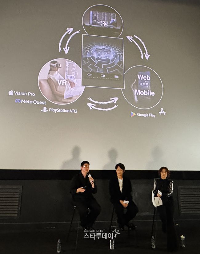 채수응 감독, 배우 조복래, 방송인 박경림이 기자간담회에 참석하고 있다. 인터랙티브 시네마 라인업 쇼케이스가 9일 오전 용산 CGV에서 열렸다. 이날 행사에는 채수응 감독과 배우 조복래 등이 참석했다. [ⓒ 매일경제 & mk.co.kr, 무단 전재, 재배포 및 AI학습 이용 금지]