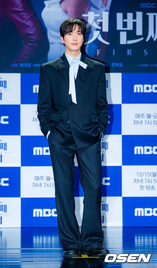 10일 오전 서울 마포구 상암동 MBC 골든마우스홀에서 MBC 새 일일드라마 ‘첫번째 남자’(극본 서현주안진영, 연출 강태흠) 제작발표회가 열렸다. 복수를 위해 다른 사람의 삶을 살게 된 여자와 욕망을 위해 다른 사람의 삶을 빼앗은 여자의 치명적 대결을 그린 드라마. 무대 위에서 배우 박건일이 포토타임을 갖고 있다. 2025.12.10 / rumi@osen