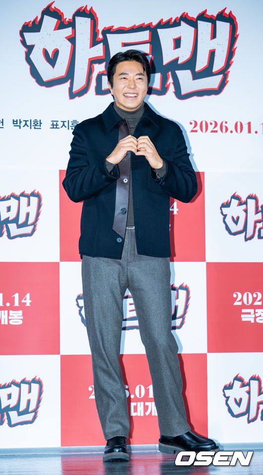 11일 오후 서울 롯데시네마 건대입구에서 영화 '하트맨' 제작보고회가 진행됐다. 이 자리에는 권상우, 문채원, 박지환, 표지훈, 최원섭 감독이 참석했다. 한편 ‘하트맨’은 돌아온 남자 승민(권상우)이 다시 만난 첫사랑을 놓치지 않기 위해 고군분투하지만, 그녀에게 절대 말할 수 없는 비밀이 생기며 벌어지는 코미디다. 배우 권상우가 포즈를 취하고 있다. 202
