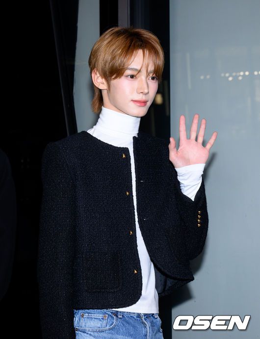 17일 서울 강남구에 위치한 플래그십 스토어에서 셀린느 청담 플래그십 이벤트가 열렸다. 이날 행사에는 배우 박보검, 배우 수지, 뷔(BTS), 그룹 투어스가 참석해 자리를 빛냈다. 그룹 투어스 한진이 행사에 참석하고 있다. 2025.12.17 /sunday@osen.co.kr