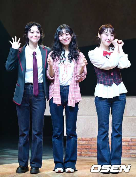 23일 오후 서울 삼성동 백암아트홀에서 뮤지컬 ‘말리’ 프레스콜이 열렸다. 뮤지컬 '말리'는 화려한 아역 스타였던 과거를 가졌지만, 현재는 평범한 삶을 살아가는 18세 '말리'가 과거로 돌아가 인형 '레비'의 몸으로 11세의 자신을 만나는 이야기다. 배우 김주연, 루나, 박수빈이 포토타임을 하고 있다. 2025.12.23 / dreamer@osen.co.k