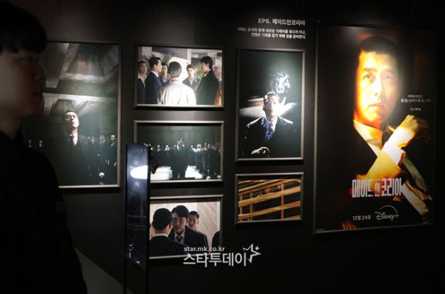 디즈니+ 오리지널 시리즈 ‘메이드 인 코리아’가 24일 서울 용산 CGV 씨네샵에서 ‘메이드 인 코리아 3색 사진전 in SEOUL’을 열었다. 1970년대 혼란과 도약이 공존했던 대한민국, 국가를 수익모델로 삼아 부와 권력의 정점에 오르려는 사내 ‘백기태’(현빈)와 그를 무서운 집념으로 벼랑 끝까지 추적하는 검사 ‘장건영’(정우성)이 시대를 관통하는 거대