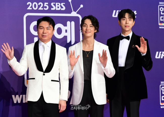 임원희(왼쪽부터), 윤시윤, 윤현민. ‘2025 SBS 연예대상’이 30일 오후 상암동 SBS 프리즘타워에서 열렸다. 시상식에 앞서 열린 레드카펫 행사에는 SBS예능프로그램 ‘골 때리는 그녀들(배성재,이현이,김진경,송해나,정혜인,이혜정,박하얀,박승희,한초임,정예원,소유미,경서,벤,마사마유,엘로디)’, ‘우리들의 발라드(박경림,대니구,정승환,미미,이예지,이지