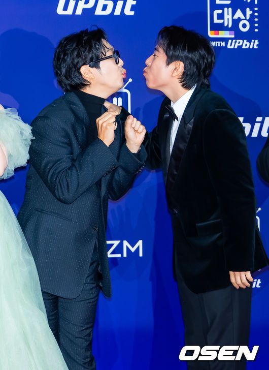 30일 오후 서울 마포구 상암 SBS 프리즘타워에서 ‘2025 SBS 연예대상’ 포토월 행사가 열렸다. 올해 대상 후보는 유재석, 전현무, 탁재훈, 신동엽, 이상민, 서장훈, 지석진이 올라 대상을 두고 치열한 경쟁을 펼친다. '런닝맨'의 하하, 양세찬이 레드카펫을 밟으며 포즈를 취하고 있다. 2025.12.30 /rumi@osen.co.kr