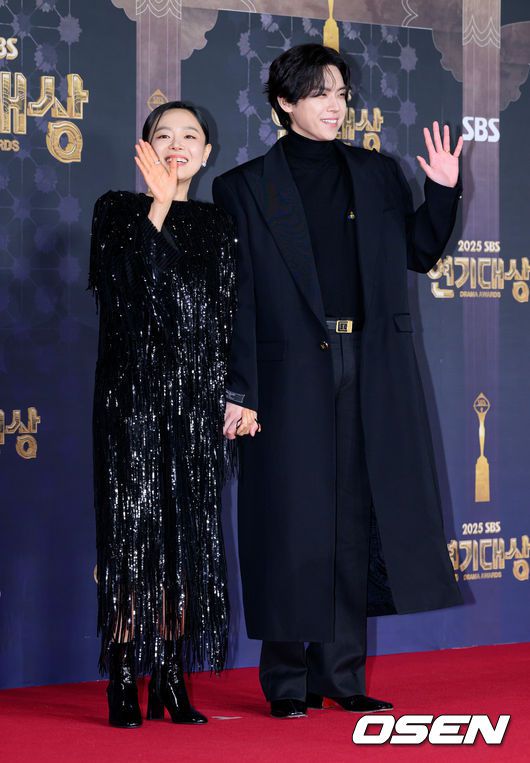 31일 오후 서울 마포구 SBS프리즘타워에서 ‘2025 SBS 연기대상’ 레드카펫 행사가 열렸다. ‘2025 SBS 연기대상’은 장르를 초월한 연기 신들의 각축전이 예고된 가운데, 고현정, 한지민, 윤계상, 이제훈, 박형식이 대상 후보로 이름을 올렸다. 배우 이상희, 김도훈이 포토타임을 가지고 있다. 2025.12.31 /sunday@osen.co.kr