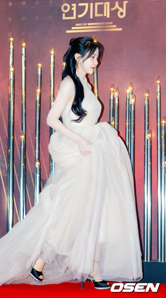 31일 오후 서울 영등포구 여의도 KBS 신관 웨딩홀에서 2025 KBS 연기대상 레드카펫 포토월 행사가 열렸다. 이날 오후 7시 10분 생방송으로 진행되는 ‘2025 KBS 연기대상’에서는 미니시리즈, 장편 드라마, 일일드라마 부문별 우수상과 최우수상을 비롯해 베스트 커플상, 인기상, 조연상, 신인상 등 시상이 진행된다. 배우 신수현이 무대 위에서 포즈를