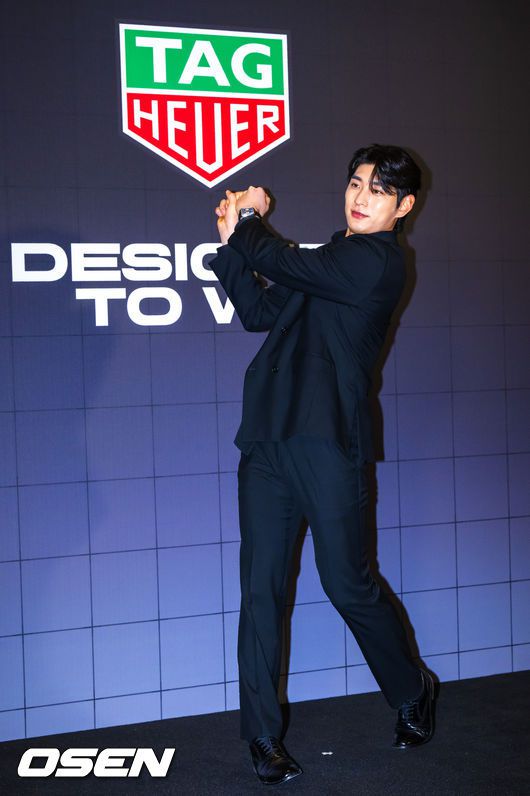 5일 오후 서울 강남구 웨스틴 서울 파르나스에서 시계 브랜드 태그호이어 포토월 행사가 진행됐다. 이날행사에는 샌프란시스코 이정후와 개그맨 이용주가 참석했다. 이정후가 포즈를 취하고 있다. 2026.01.05 / soul1014@osen.co.kr