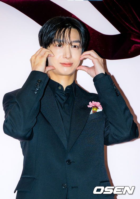 몬스타엑스 형원이 7일 오전 서울 성수동 대림창고에서 열린 메이크업 브랜드 팝업스토어 오픈 행사에 참석했다. 이날 행사에는 미야오 엘라, 몬스타엑스 형원, 선미, 우주소녀 다영, 아이딧 장용훈, 김민재, 백준혁, 카니가 참석해 자리를 빛냈다. 몬스타엑스 형원이 포즈를 취하고 있다. 2026.01.07 / rumi@osen.co.kr