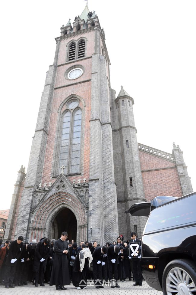 9일 故 안성기의 운구 행렬이서울 중구 명동성당에서 장례미사를 마치고 영결식장으로 이동하기 전 고인을 향해 예를 갖추고 있다. 영정과 금관문화훈장은 정우성과 이정재가 들었으며 운구는 설경구, 조우진, 주지훈, 박해일, 박철민, 유지태가 맡았다. 2026. 1. 9. 박진업 기자 upandup@sportsseoul.com [기사제보 news@sportsseo