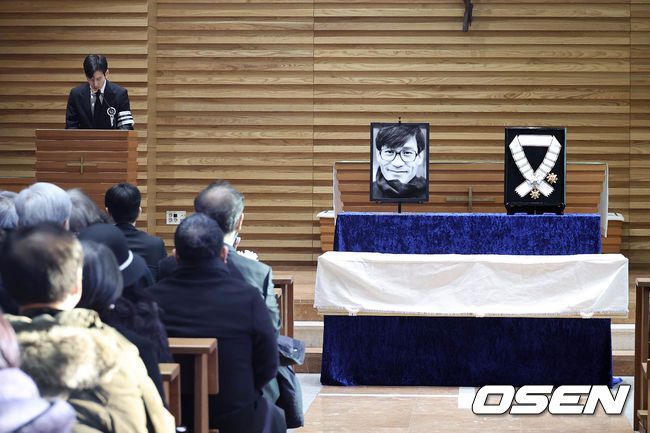 [OSEN=사진팀] 故 안성기 장례 미사 및 영결식이 9일 서울 명동성당에서 엄수됐다. 안성기는 지난 5일 오전 9시 서울 용산구 순천향대병원 중환자실에서 치료를 받던 중 가족들이 지켜보는 가운데 향년 74세로 세상을 떠났다. 지난달 30일 자택에서 음식물이 목에 걸린 채 쓰러져 병원으로 이송된 뒤 의식불명 상태로 치료를 받아온 지 6일 만이다. 영결식에서