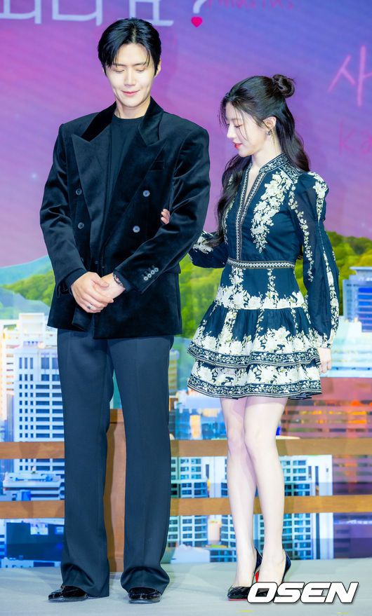 13일 오후 서울 강남구 조선 팰리스 서울 강남 더 그레이트 홀에서 넷플릭스 시리즈 '이 사랑 통역 되나요?' 제작발표회가 열렸다. 다중언어 통역사 주호진(김선호)이 글로벌 톱스타 차무희(고윤정)의 통역을 맡게 되면서 펼쳐지는 예측불가 로맨틱 코미디. 오는 16일 공개 예정. 배우 김선호와 고윤정이 포토타임을 하고 있다. 2026.01.13 / rumi@o