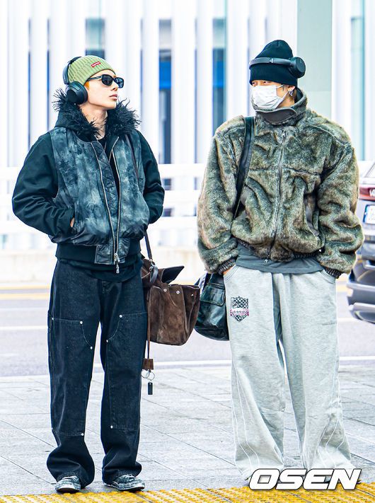 그룹 투모로우바이투게더(TOMORROW X TOGETHER, TXT)가 해외 일정 차 16일 인천국제공항을 통해 출국했다. 투모로우바이투게더는 오는 17~18일에 월드투어 ‘TOMORROW X TOGETHER WORLD TOUR 'ACT : TOMORROW' IN ASIA’ 싱가포르에 참여한다. 투모로우바이투게더 태현과 연준이 출국장으로 이동하고 있다. 2