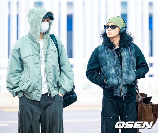 그룹 투모로우바이투게더(TOMORROW X TOGETHER, TXT)가 해외 일정 차 16일 인천국제공항을 통해 출국했다. 투모로우바이투게더는 오는 17~18일에 월드투어 ‘TOMORROW X TOGETHER WORLD TOUR 'ACT : TOMORROW' IN ASIA’ 싱가포르에 참여한다. 투모로우바이투게더 휴닝카이와 태현이 출국장으로 이동하고 있다.