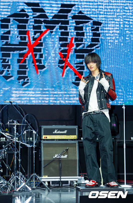 21일 오후 서울 예스24 원더로크홀에서 그룹 에이엠피(AxMxP) 미니 1집 ‘Amplify My Way’(앰플리파이 마이 웨이) 발매 쇼케이스가 진행됐다. AxMxP는 앨범명처럼, 세상의 기준에 맞추기보단 내 안의 볼륨을 높여 ‘나답게’ 앞으로 나아가는, 나의 길을 당당히 뻗어 나가는 자신감을 보여 줄 예정이다. 그룹 에이엠피 김신이 무대 위에서 포즈를