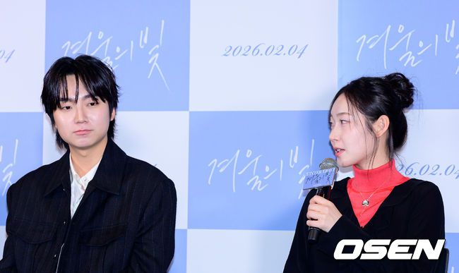 22일 오후 서울 용산구 CGV용산아이파크몰에서 영화 '겨울의 빛' 언론시사회가 열렸다. ‘겨울의 빛’은 추운 겨울의 끝에서 따뜻한 빛을 마주한 열여덟 소년의 시간을 담은 웜메이드 성장 드라마로, 가족의 무게를 짊어진 채 어른을 잠시 유예한 한 소년의 겨울나기를 그린 작품이다. 배우 성유빈, 강민주가 간담회를 하고 있다. 2026.01.22 / jpnews