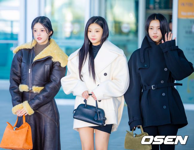 그룹 아일릿(ILLIT)의 멤버 원희, 민주, 윤아가 24일 인천국제공항을 통해 해외 일정 참석차 출국했다. 아일릿은 이날 파리 패션쇼 행사에 참석하기 위해 프랑스 파리로 출국했다. 아일릿 민주, 원희, 윤아가 출국길에 오르며 포즈를 취하고 있다. 2026.01.24 / rumi@osen.co.kr