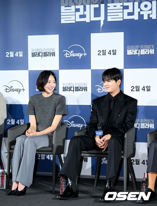 디즈니+ '블러디 플라워' 제작발표회가 27일 서울 용산구 CGV용산아이파크몰에서 열렸다. 블러디 플라워‘는 모든 불치병을 치료할 수 있는 능력을 가진 연쇄살인범을 둘러싼 사람들의 이야기를 그린 미스터리 스릴러다. 배우 금새록, 려운이 질문을 듣고 있다. 2026.01.27 /cej@osen.co.kr
