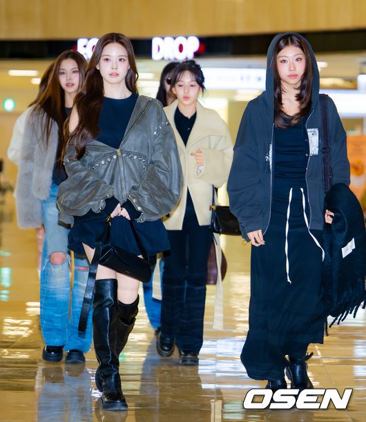 그룹 이즈나가 27일 오후 김포국제공항을 통해 해외 일정 참석차 출국했다. 이즈나(izna-마이, 방지민, 코코, 유사랑, 최정은, 정세비)는 이날 일본 팬콘서트(izna 1st FAN-CON [Not Just Pretty] In Japan)참석차 일본 도쿄로 출국했다. 이즈나가 출국장으로 이동하며 포즈를 취하고 있다. 2026.01.27 / rumi@os