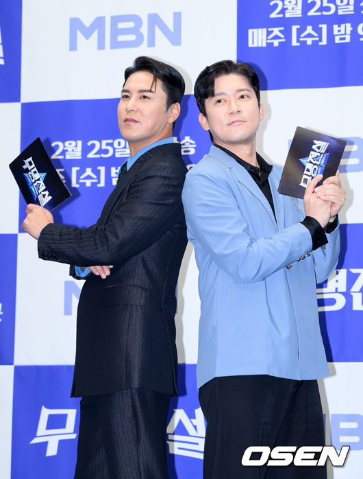 25일 스탠포드 호텔 서울에서 MBN 초대형 트롯 오디션 ‘무명전설-트롯 사내들의 서열전쟁’ 제작발표회가 열렸다. 25일 오후 9시 40분 첫 방송되는 ‘무명전설’에서는 인지도로 서열을 나눈 ‘서열탑’ 최하단 1층부터 3층까지 위치한 무명 도전자들의 무대가 펼쳐진다. 가수 장민호, 김대호가 포토타임을 가지고 있다. 2026.02.25 /sunday@osen