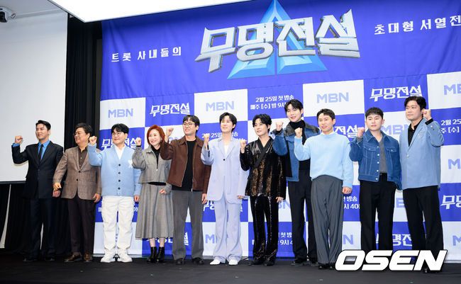 25일 스탠포드 호텔 서울에서 MBN 초대형 트롯 오디션 ‘무명전설-트롯 사내들의 서열전쟁’ 제작발표회가 열렸다. 25일 오후 9시 40분 첫 방송되는 ‘무명전설’에서는 인지도로 서열을 나눈 ‘서열탑’ 최하단 1층부터 3층까지 위치한 무명 도전자들의 무대가 펼쳐진다. 가수 장민호, 남진, 조항조, 주현미, 김우진 PD, 신유, 강문경, 손태진, 양세형, 임