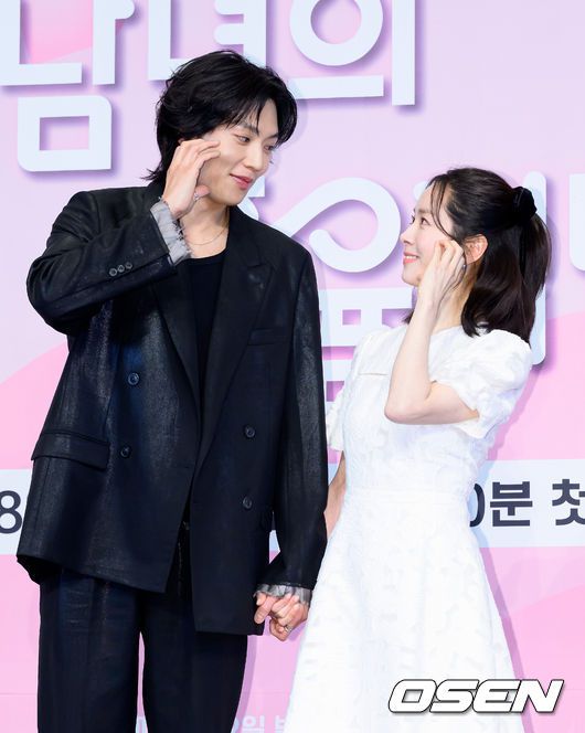 26일 오후 더 링크호텔 서울에서 JTBC 새 드라마 ‘미혼남녀의 효율적 만남’ 제작발표회가 열렸다. ‘미혼남녀의 효율적 만남’은 사랑을 결심한 여자가 소개팅에 나가 다른 매력을 가진 두 남자를 만나고 끌리고 또 흔들리면서 결국 진정한 사랑의 의미를 찾아 나가는 이야기를 그리는 드라마다. 배우 이기택, 한지민이 포토타임을 가지고 있다. 2026.02.26