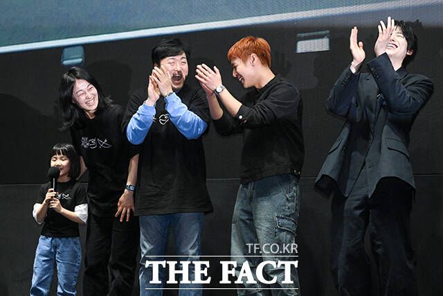 배우 박지윤(왼쪽)이 17일 오후 서울 강남구 메가박스 코엑스에서 열린 영화 ‘왕과 사는 남자’ 무대인사에 참석해 인사말을 하고 있다. 영화 ‘왕과 사는 남자(이하 왕사남)’는 이날 누적 관객 수 1360만 명(영화진흥위원회 영화관입장권통합전산망 기준)을 돌파하며 1400만 명 관객 돌파를 목전에 두고 있다. 지난달 4일 스크린에 걸린 '왕사남'은 1457