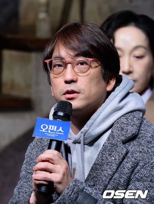 19일 오후 서울 대학로TOM티오엠에서 연극 ‘오펀스’의 프레스콜이 열렸다. 연극 ‘오펀스(Orphans)’는 필라델피아 북부를 배경으로 중년의 갱스터 해롤드와 고아 형제 트릿, 필립이 이상한 동거를 통해 가족이 되어가는 이야기를 다룬다. 김태형 연출이 인사말을 하고 있다. 2026.03.19 /sunday@osen.co.kr