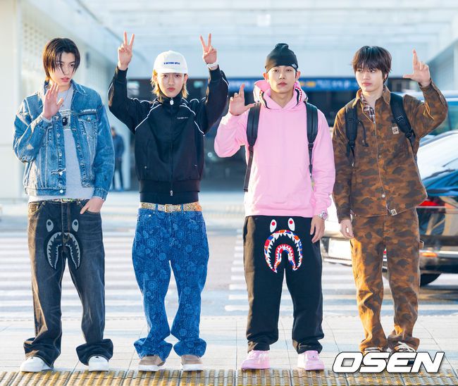 보이그룹 롱샷(LNGSHOT-오율, 률, 우진, 루이)가 20일 오후 해외 일정 참석을 위해 인천공항을 통해 홍콩으로 출국했다. 롱샷은 홍콩에서 컴플렉스콘 홍콩(ComplexCon Hong Kong)을 통해 팬들을 만날 예정이다. 롱샷이 출국장으로 향하며 포즈를 취하고 있다. 2026.03.20/ rumi@osen.co.kr