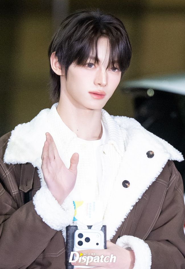 '투어스'가 해외 일정을 위해 8일 오후 인천공항을 통해 대만으로 출국했다. 한진은 브라운 자켓과 청바지로 멋을 냈다. 비현실적인 외모로 시선을 사로잡았다. 멀리서도 빛이나 저장을 부르는 꽃미모