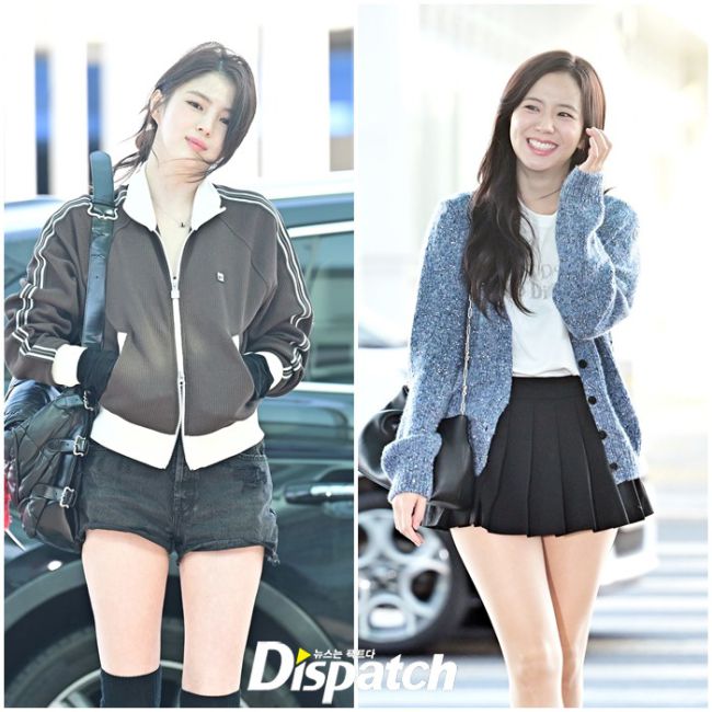 배우 한소희와 '블랙핑크' 지수가 해외 일정을 위해 27일 오전 인천국제공항을 통해 이탈리아 밀라노로 출국했다. 한소희는 브라운 컬러의 트랙톱 상의와 한뼘 핫팬츠로 섹시한 이미지를 어필했다. 지수 역시 블랙 컬러의 미니 스커트로 아찔한 각선미를 뽐냈다. "아찔아찔해" 봄날의 분위기 "미소에 사르르" "예쁨, 그 자체" 사뿐사뿐 발걸음 눈부신 볼하트 "인형이