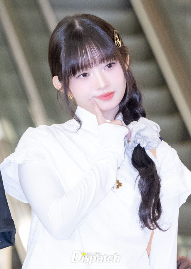 아이브가 해외 일정차 29일 오전 김포공항을 통해 도쿄로 출국했다. 레이는 화이트 셔츠에 청바지로 캐주얼 패션을 보여줬다. 깜찍한 표정과 포즈로 시선을 사로잡았다. 남심 녹이는 윙크 콩순이의 출국 멀리서부터 볼하트