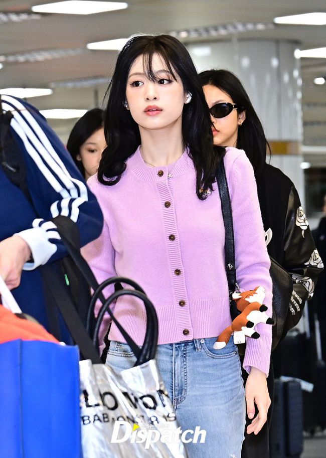'베이비몬스터' 아현이 해외 일정을 마치고 14일 오후 김포국제공항을 통해 입국했다. 아현은 핑크 컬러의 니트와 데님진으로 캐주얼한 공항패션을 연출했다. 인형같은 이목구비가 돋보였다. "멀리서도, 시선강탈" 해맑은 손인사