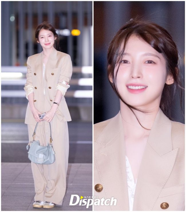 그룹 '오마이걸' 아린이 해외 일정 소화를 위해 25일 오후 인천국제공항을 통해 프랑스 칸으로 출국했다. 아린은 베이지 수트로 우아한 공항패션을 연출했다. 인형같은 미모가 돋보였다. 우월한 비율 힐링 스마일 "당겨도, 무결점"