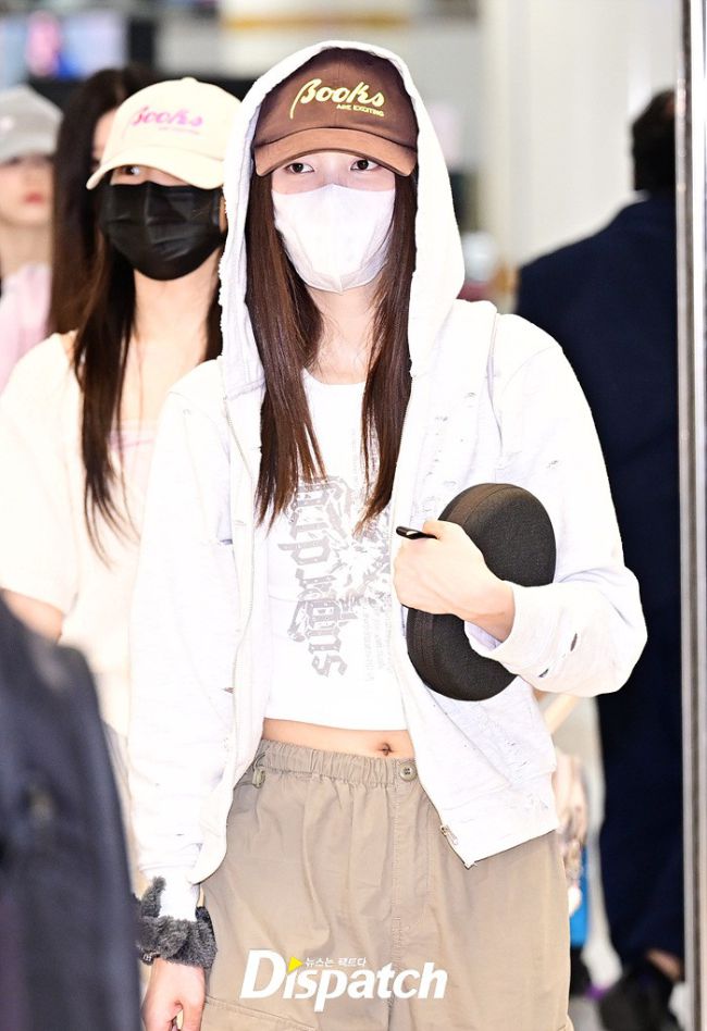 '아일릿'이 해외 일정을 마치고 7일 오후 김포국제공항을 통해 입국했다. 윤아는 마스코와 모자를 쓴 채 입국장을 나섰다. 화장기 없는 얼굴에도 청순한 매력이 돋보였다. "멀리서도, 시선강탈" "눈빛으로 올킬" 내추럴 미녀