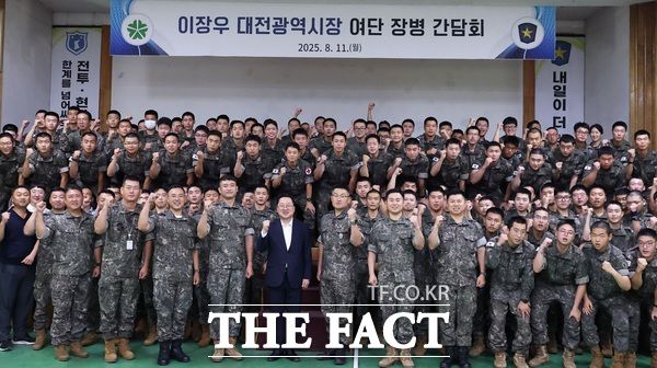 위문금·꿈돌이 라면 전달…예비군 훈련장 살펴 이장우 대전시장이 11일 제32보병사단 예하 제505보병여단을 방문했다. /대전시 이장우 대전시장이 11일 오전 대전을 방호하는 육군 제32보병사단 예하 제505보병여단을 찾아 장병들의 노고를 위로하고 격려했다. 이장우 시장은 이날 안보교육관에서 부대 현안 보고를 청취하고 200여 명의 장병과 대화를 했다. 이후