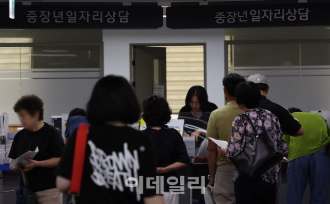 올해 1·4분기 임금근로 일자리가 역대 가장 적은 증가폭을 기록한 26일 서울 마포구 서울서부 고용복지플러스센터에서 한 시민이 상담을 위해 이동하고 있다. 임금근로 일자리 증가가 대폭 줄어든 주요 원인은 건설 경기 위축이다. 건설업은 전년 동기 대비 15만4000개가 감소하며 역대 가장 큰 감소폭을 기록했다.