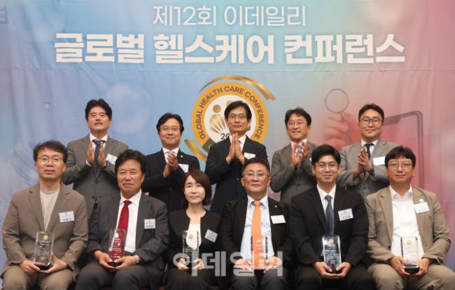 4일 서울 중구 프레스센터에서 열린 ‘제12회 이데일리 글로벌 헬스케어 컨퍼런스’에서 각 부문 수상자·시상자들이 기념촬영을 하고 있다.
