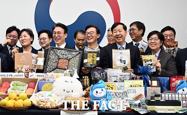 김민석 국무총리를 비롯한 국무위원들이 23일 오전 서울 종로구 정부서울청사에서 열린 추석 명절 맞이 농수산식품 소비촉진 행사에 참석해 명절 선물세트 앞에서 환한 미소를 짓고 있다. darkroom@tf.co.kr 사진영상기획부 photo@tf.co.kr 발로 뛰는 더팩트는 24시간 여러분의 제보를 기다립니다. ▶카카오톡: '더팩트제보' 검색 ▶이메일: je