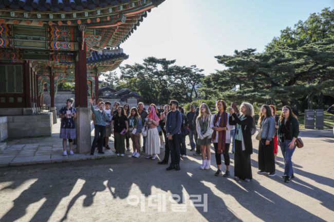 추석연휴인 8일 서울 창경궁에서 열린 '2025 가을 궁중문화축전-'창덕궁 아침 궁을 깨우다'를 찾은 외국인들이 창덕궁을 둘러보고 있다. 12일까지 열리는 '창덕궁-아침 궁을 깨우다'는 고요한 아침의 숲길을 해설사와 함께 걷는다. 국가유산진흥원 제공.