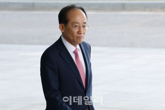 국회의 계엄 해제 표결을 방해한 의혹을 받는 추경호 국민의힘 전 원내대표가 30일 오전 서울 서초구 서울고검에 마련된 조은석 내란특별검사팀 사무실에 피의자 신분으로 출석하고 있다.