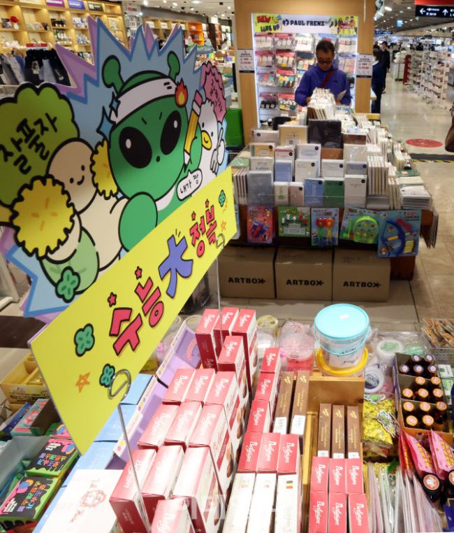 2026학년도 대학수학능력시험을 나흘 앞둔 9일 서울 종로구 교보문고 광화문점에 수험생을 응원하는 선물들이 진열되어 있다.