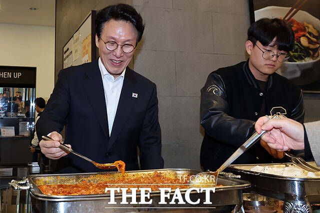 김민석 국무총리(왼쪽)가 17일 오전 '천원의 아침밥'을 제공하는 서울 종로구 성균관대학교 은행골식당을 찾아 학생들과 함께 자율배식을 하고 있다. <사진=청사사진기자단> darkroom@tf.co.kr 사진영상기획부 photo@tf.co.kr 발로 뛰는 더팩트는 24시간 여러분의 제보를 기다립니다. ▶카카오톡: '더팩트제보' 검색 ▶이메일: jebo@tf.