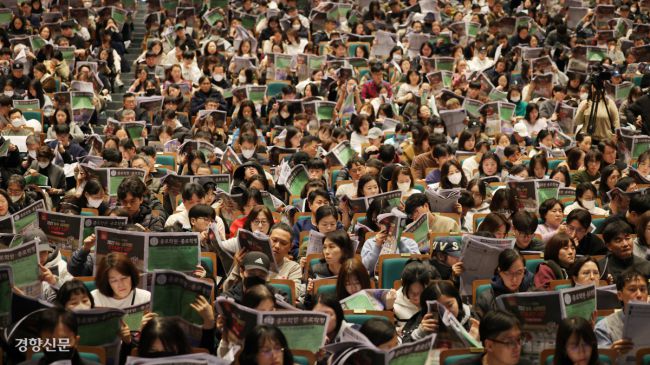 7일 서울 종로구 성균관대학교 600주년 기념관에서 종로학원 주최로 ‘2026 정시 합격 가능선 예측 및 지원전략 설명회’가 열리고 있다. 정효진 기자 수험생과 학부모들이 7일 서울 종로구 성균관대학교 600주년 기념관에서 종로학원 주최로 열린 ‘2026 정시 합격 가능선 예측 및 지원전략 설명회’에서 배치참고표를 들여다보고 있다. 정효진 기자 hoho@k