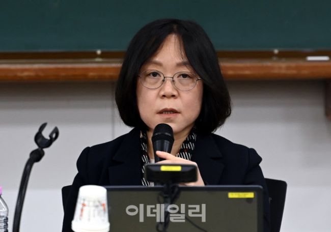 김예영 전국법관대표회의 의장이 8일 경기도 고양시 일산 사법연수원에서 열린 2025년 하반기 전국법관대표회의에서 발언을 하고 있다. 전국법관대표회의은 각급 법원의 대표 판사들이 모인 회의체로 사법행정과 법관 독립에 관한 사항에 대해 의견을 표명하거나 건의할 수 있다.