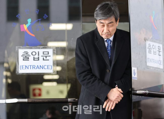 이종걸 전 더불어민주당 의원이 19일 서울 양천구 서울남부지법에서 열린 국회 ‘패스트트랙 충돌’ 사건 관련 1심 선고 공판에 출석, 벌금 500만원의 판결을 받은 뒤 법원을 나서고 있다.