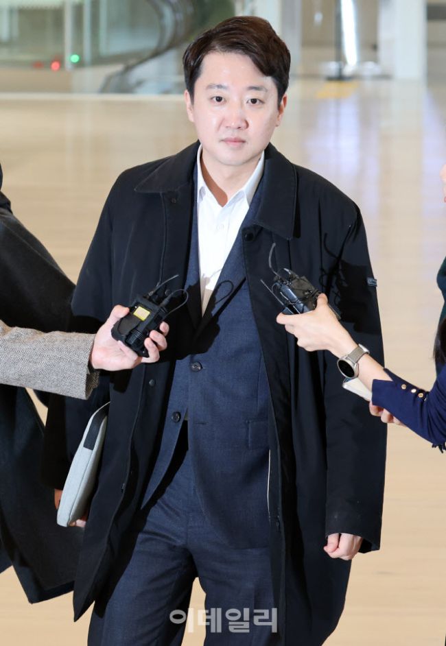 이준석 개혁신당 대표가 21일 윤석열 전 대통령의 공천개입 의혹과 관련한 조사를 받기 위해 서울 종로구 KT 광화문빌딩 웨스트에 마련된 민중기 특별검사팀에 피의자 신분으로 출석, 취재진 질의에 답하고 있다.