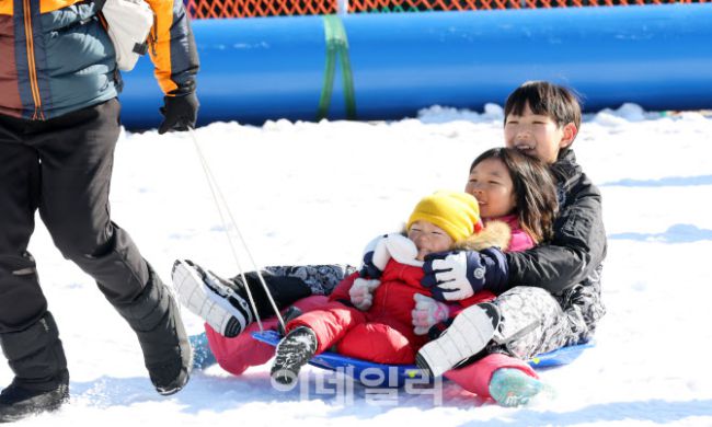 성탄절인 25일 서울 노원구 서울과학기술대학교에 마련된 '노원구, 씽씽 눈썰매장'을 찾은 시민들이 썰매를 타며 즐거운 시간을 보내고 있다.