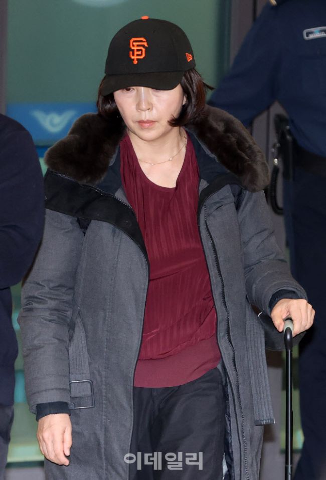 김경 서울시의원이 11일 인천국제공항 제1여객터미널을 통해 귀국하고 있다. 김 의원은 과거 2022년 지방선거 당시 더불어민주당 소속이던 강선우 의원에게 공천헌금 1억원을 전달한 의혹을 받고 있다.